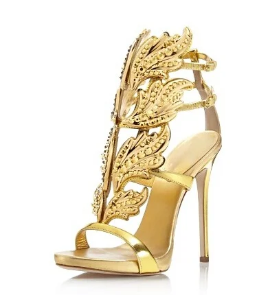 Gold Leaf Ankle Wrap High Heel Sandals Sexy | Gold Designer Heels