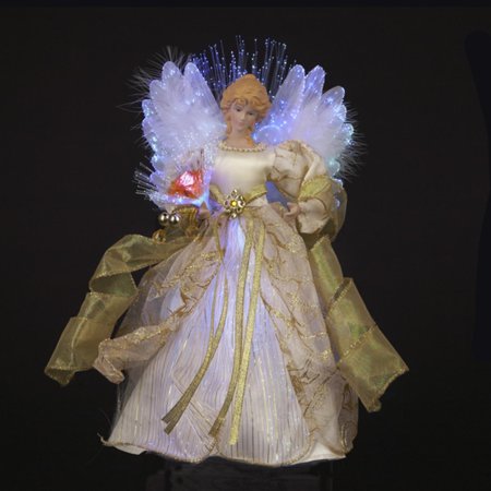 Ivory Gold Lighted Fiber Optic Angel Christmas | Lighted Angel Tree Topper