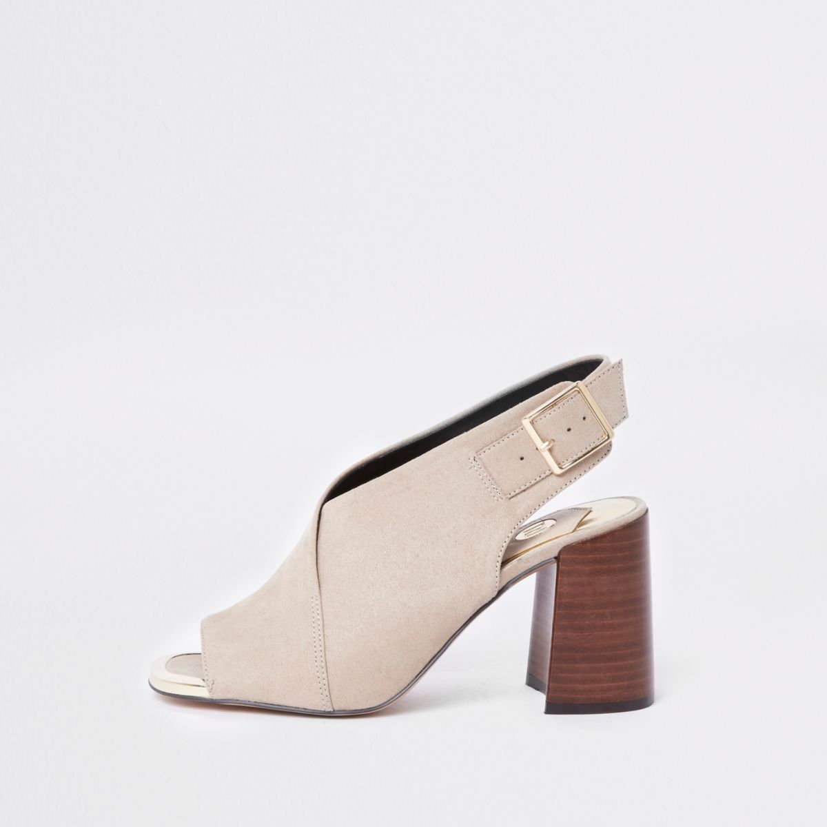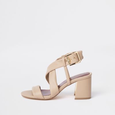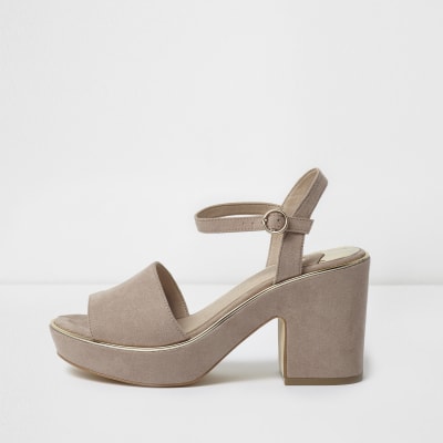 River Island Camel Suede Wrap Block Mid Heel Sandals | Beige Block Heel Sandals