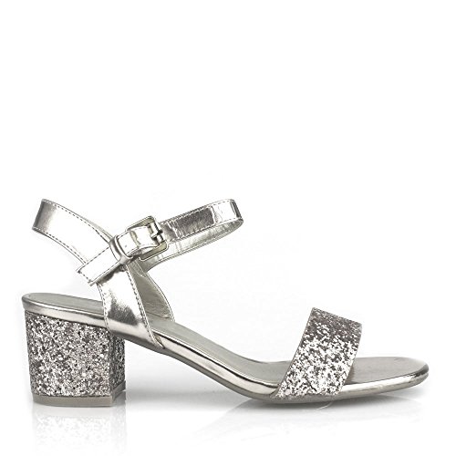 Harlow Silver Glitter Block Heel Sandal Shoes | Silver Block Heel Sandals
