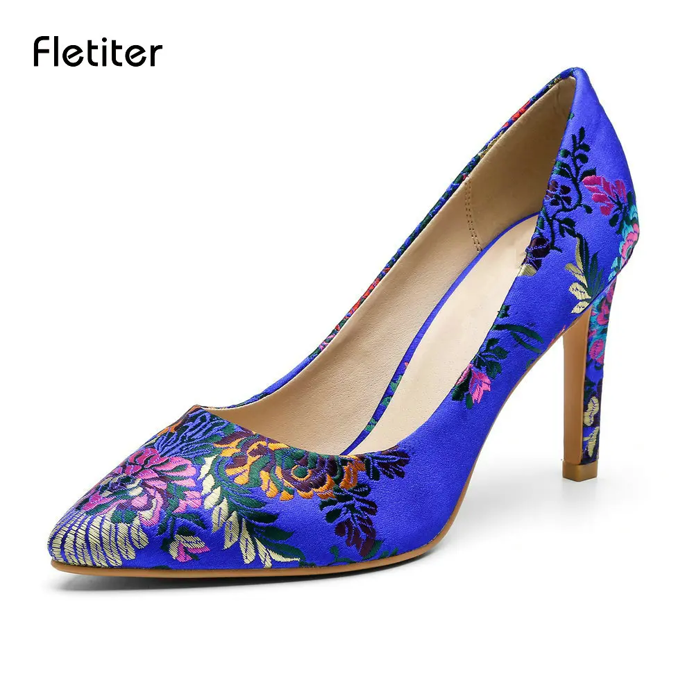 Fletite Top Quality Elegant Embroidery Color Women Pumps | Best Heels 2018