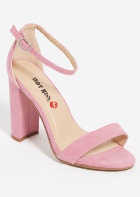 Jady Rose Strap Block Heel Suede Light Pink Sandal | Light Pink Block Heels