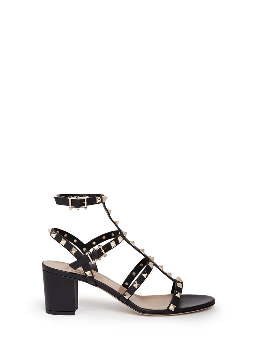 Rockstud Leather Block Heel Gladiator Sandals Valentino | Valentino Block Heel Sandals