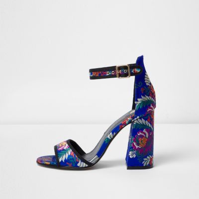 Blue Print Block Heel Sandals Sandals Shoes Boots | Blue Block Heel Sandals