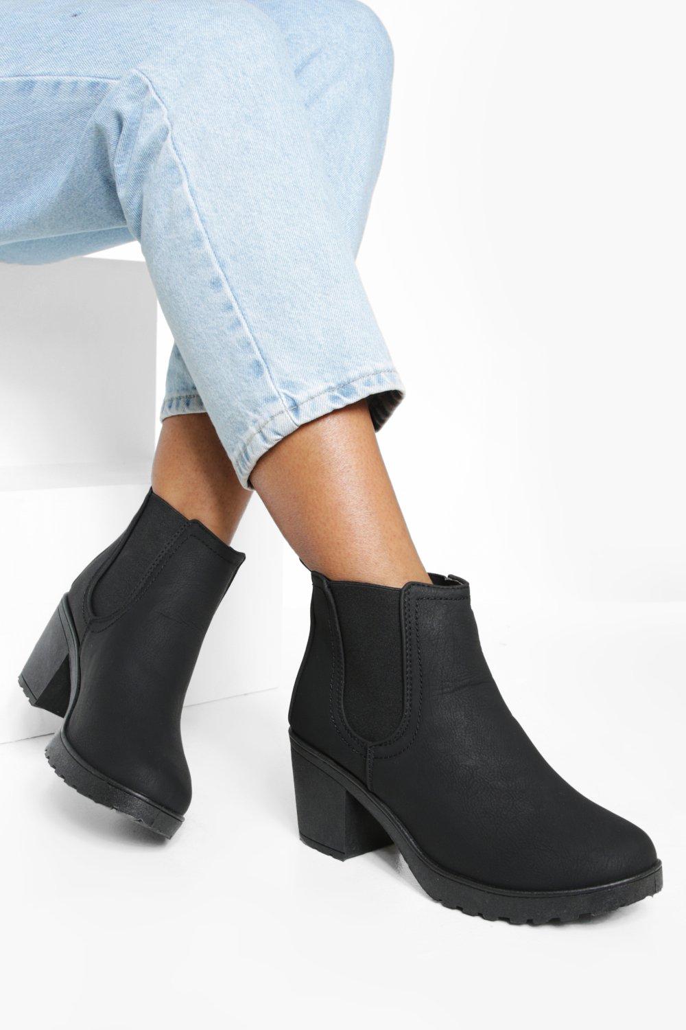 Tia Chunky Cleated Heel Chelsea Boot Boohoo | Chunky Chelsea Boots