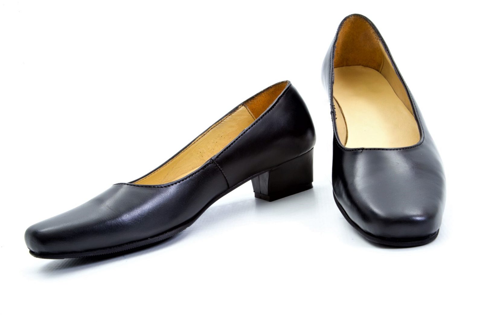 Reduced Clear Plain Black Leather Female Court Shoes | Clear Court Shoes