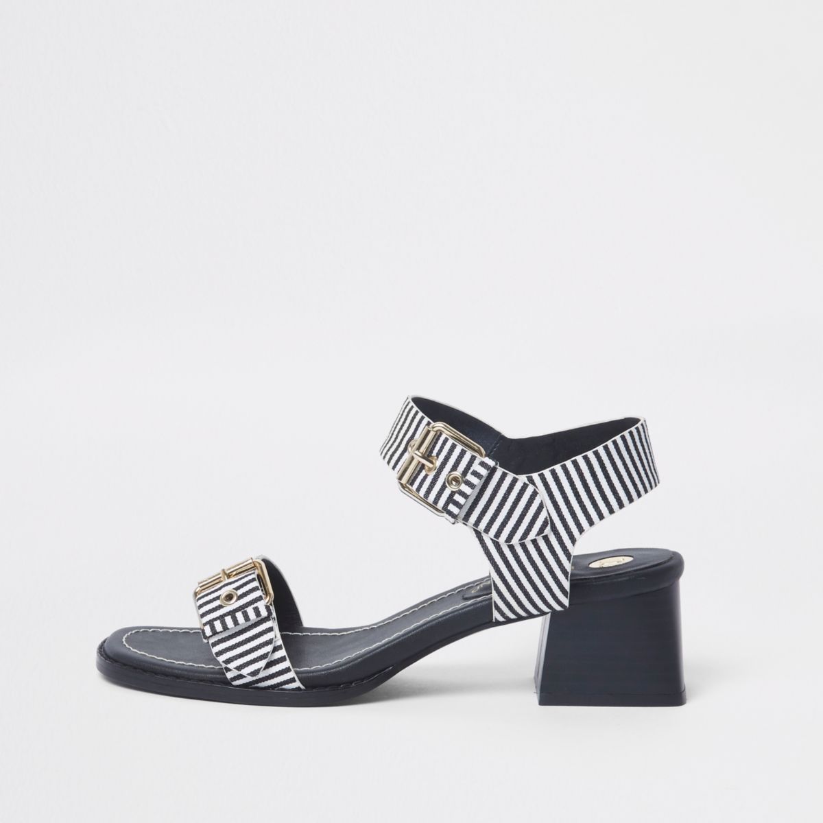 Navy Stripe Part Block Heel Sandals Sandals Shoes | Navy Block Heel Sandals