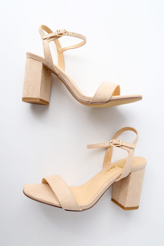 Cute Chunky Heel Sandals Nude Suede High Heel Sandals | Nude High Heel Sandals