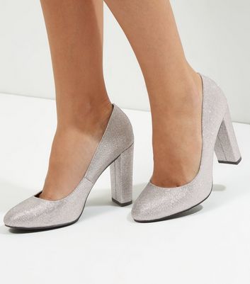 Wide Fit Wide Fit Metallic Glitter | Wide Fit Silver Heels