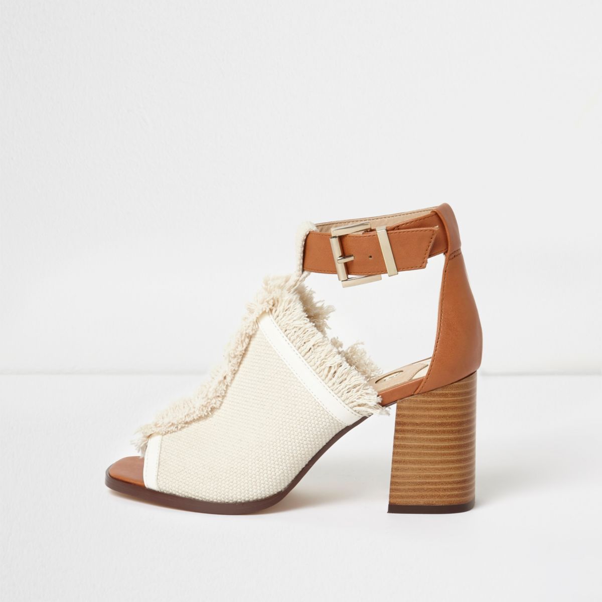 Cream Frayed Edge Block Heel Shoe Boots Shoes Shoes | Cream Block Heels