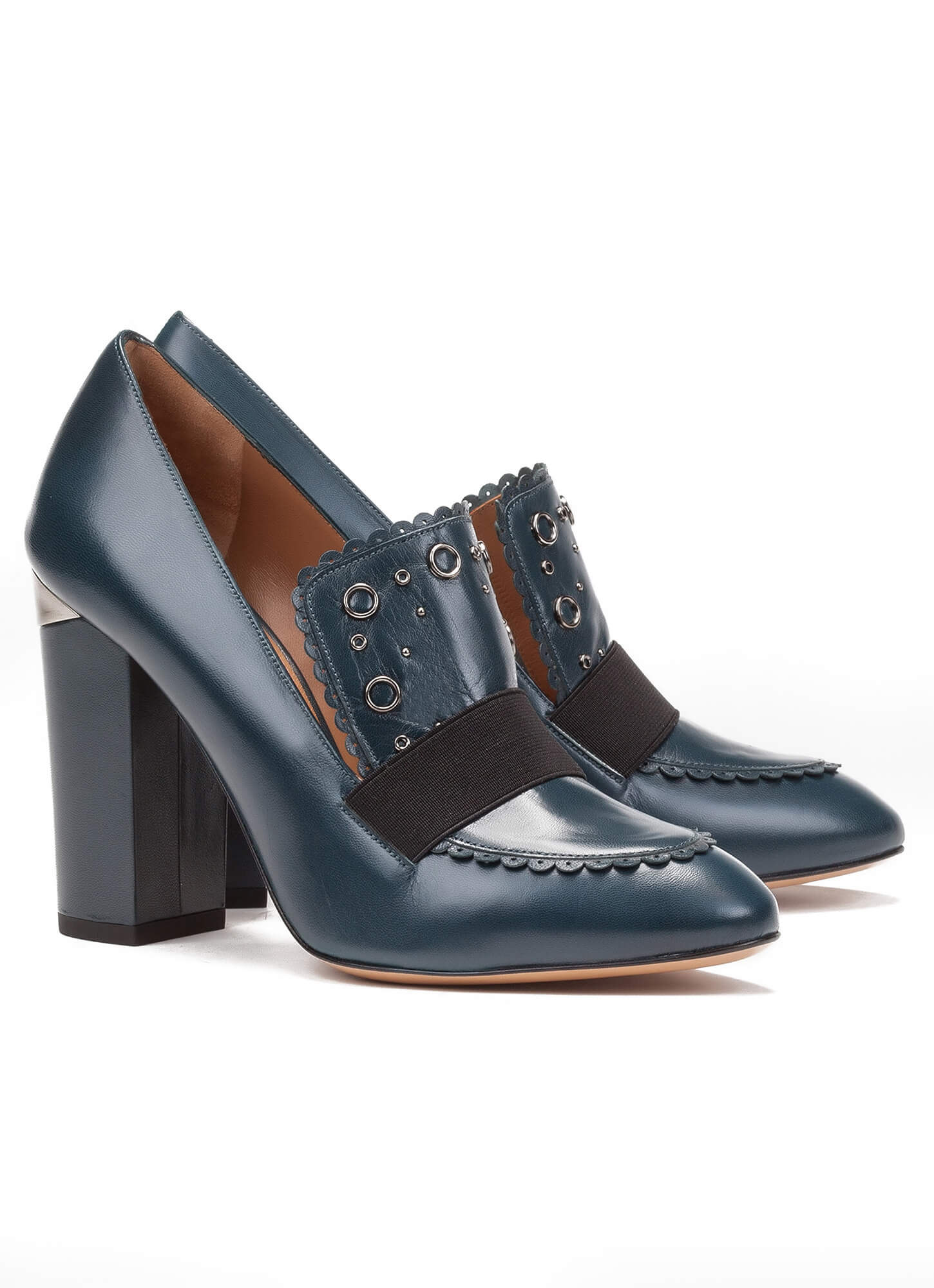 High Heel Loafers Blue Leather Shoe Store Pura | High Heel Loafers