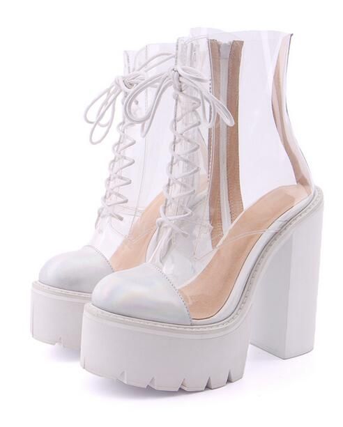 Fashion Platform Wedge Heels Clear Boots Jeffrey | Clear Heels Cheap