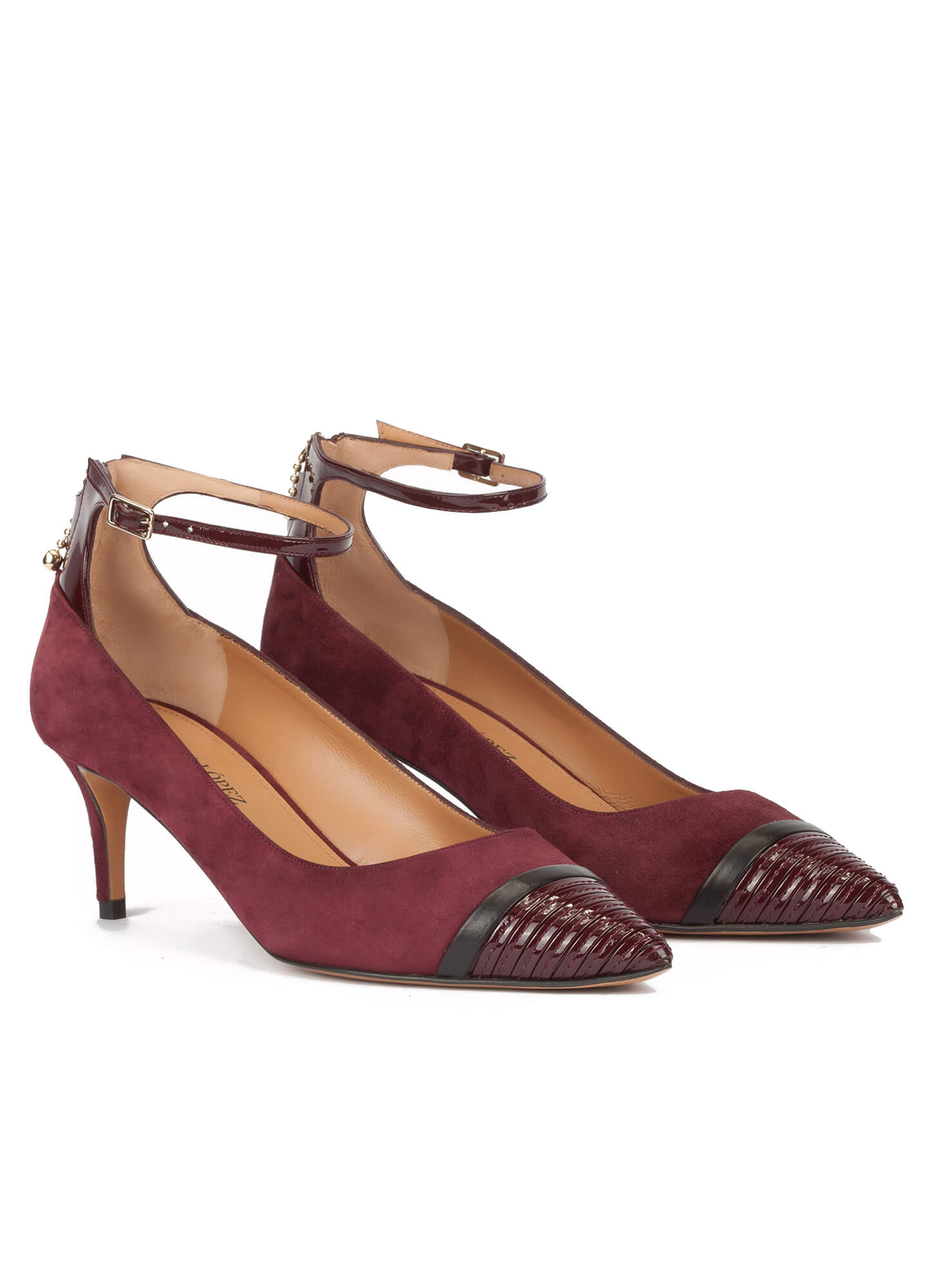 Ankle Strap Point Toe Mid Heel Shoes Burgundy Suede | Mid Heels