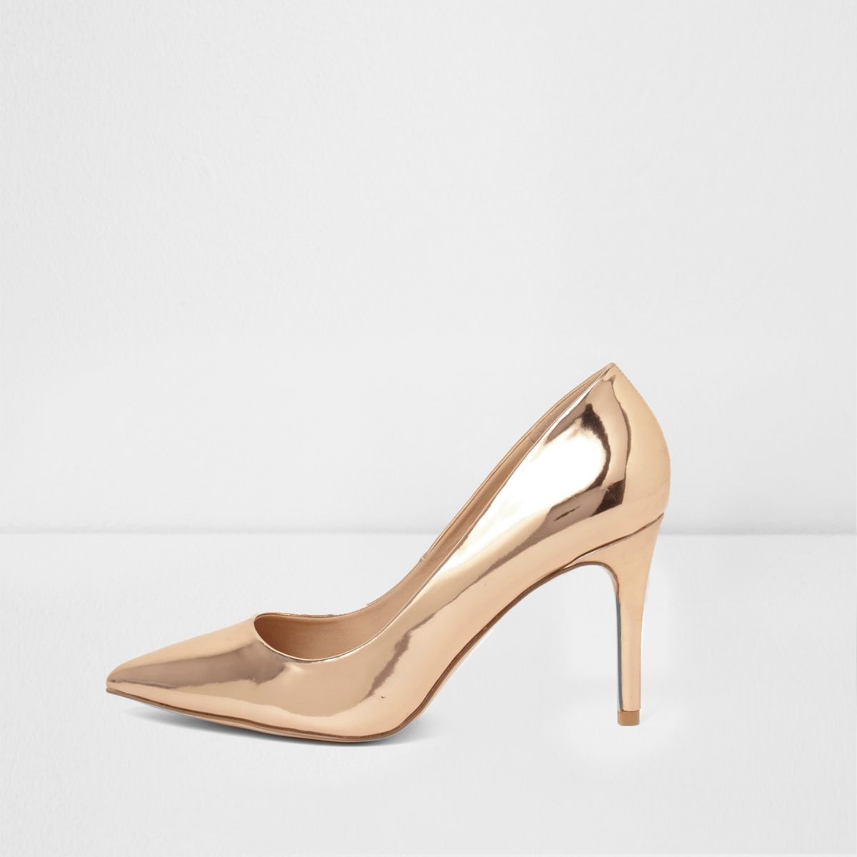 River Island Rose Gold Metallic Mid Heel Court Shoes Rose | Rose Gold Shoes Mid Heel