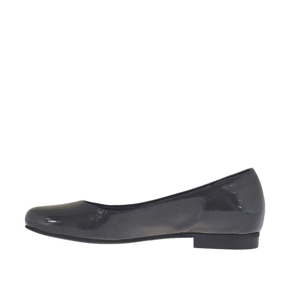 Womans Ballerina Shoe Dark Grey Patent Leather Heel | Dark Grey Heels