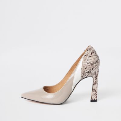 Beige Snake Print Panel Court Shoes Shoes Shoes | Snake Heels