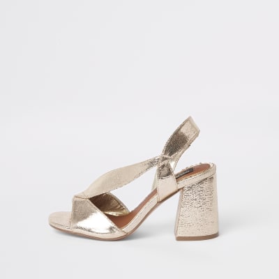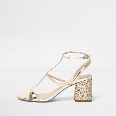 Lyst River Island Rose Gold Glitter Block Heel Sandals | Gold Block Heel Shoes