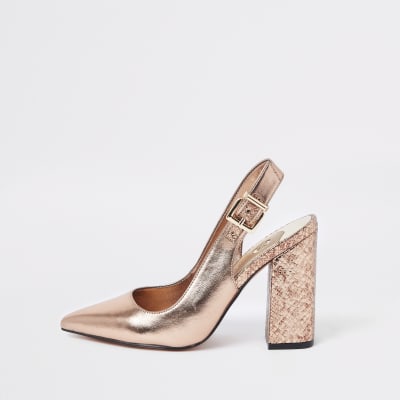 Gold Wide Fit Slingback Court Shoes Sandals Shoes | Gold Wide Fit Heels