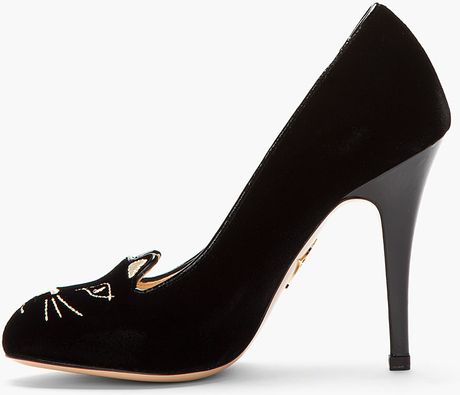Charlotte Olympia Black Velvet Cat Pumps Black Black | Black Velvet Pumps