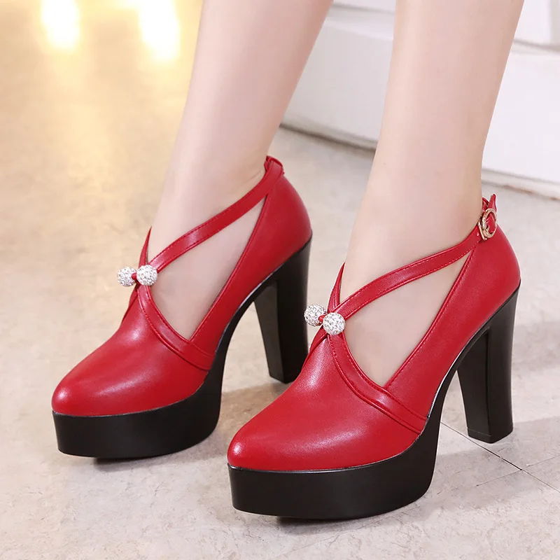 Quality Black Red Block Heel Pumps Womens Platform Shoes | Red Block Heel Pumps